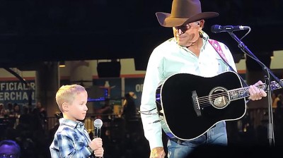 Today, George and Harvey are belting out the powerful lyrics together at the Houston Rodeo Show in Houston, Texas. As soon as George brought his grandson onstage, the crowd started cheering. And the young boy stood right by his granddad’s side the entire time.